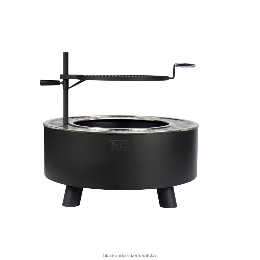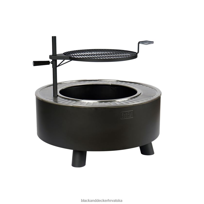 ovaj set za vatru uključuje ugrađeni stalak za cjepanice, žarač, ugrađenu ploču za pečenje i podesivi roštilj.